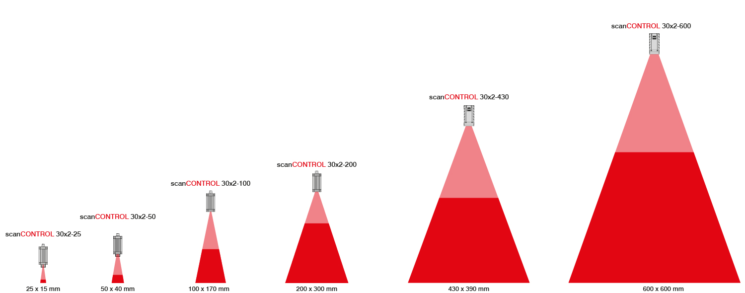סורקי לייזר ScanCONTROL 30x2 הם חיישני פרופיל רבי עוצמה מבחינת גודל, דיוק וקצב מדידה. סורקי לייזר אלה מספקים נתוני פרופיל דו-ממדיים מכוילים עם עד 8 מיליון נקודות לשנייה. עם תדר פרופיל מרבי של 10kHz, הסורקים מיועדים למדידות פרופיל מדויקות בתהליכים דינמיים. מטריצת החיישן מציעה רזולוציה של 1,024 נקודות עם מרחק נקודה החל מ-24 מיקרומטר. המשמעות היא שניתן לזהות באופן מהימן אפילו פרטים קטנים.