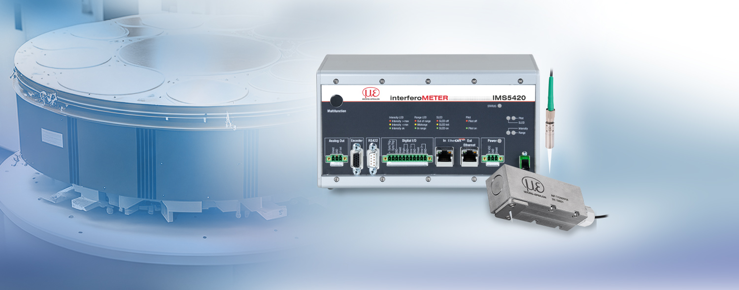 ה-IMS5420 הוא אינטרפרומטר אור לבן בעל ביצועים גבוהים למדידת עובי ללא מגע של פרוסות סיליקון מונוקריסטליות. לבקר יש דיודה סופר-לומינסנטית (SLED) רחבת פס עם טווח אורכי גל של 1,100 ננומטר. זה מאפשר מדידת עובי של פרוסות סיליקון לא מאולחות, מאולחות ומאולחות מאוד עם מערכת מדידה אחת בלבד. ה-IMS5420 משיג יציבות אות של פחות מ-1 ננומטר. ניתן למדוד את העובי ממרחק של 24 מ"מ.